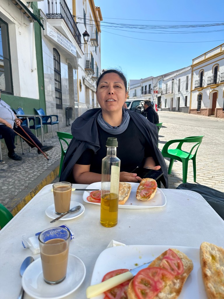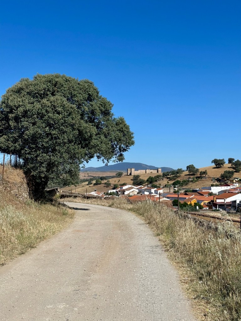 14 petits Kms mais techniques, montagnes russes garanties. Paysages de la Dehesa andalouse pour quelques kms encore car demain , nous entrerons en Extremadura. Autre lieux autres mœurs …