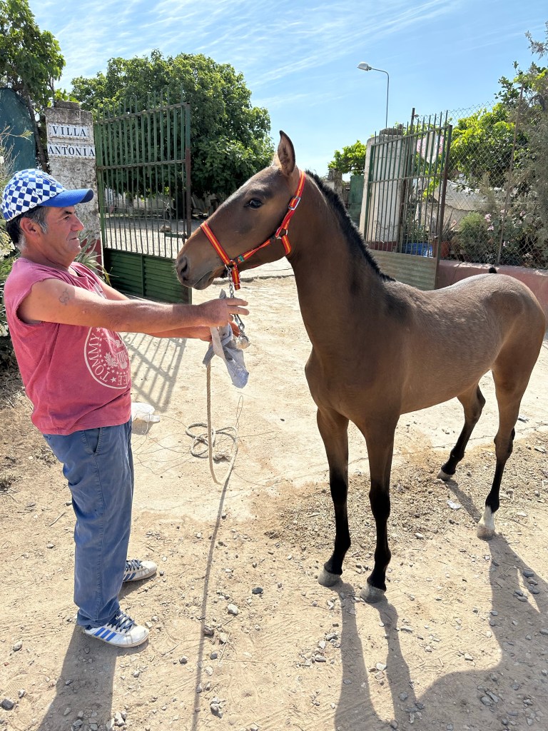En arrivant on rencontre un fermier avec « caprice » une jeune jument andalouse de 9 mois magnifique !