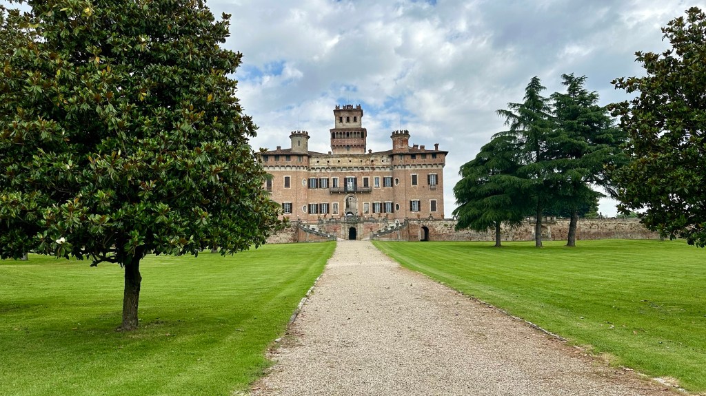 Le village Chignolo Po abrite un joli château, fermé à notre passage mais dont l’entrée est à 13 euros tout de même. Une petite pause dans ce village où les hommes sont déjà en pleine discussion à la terrasse. De quoi se parlent t’ils ? …