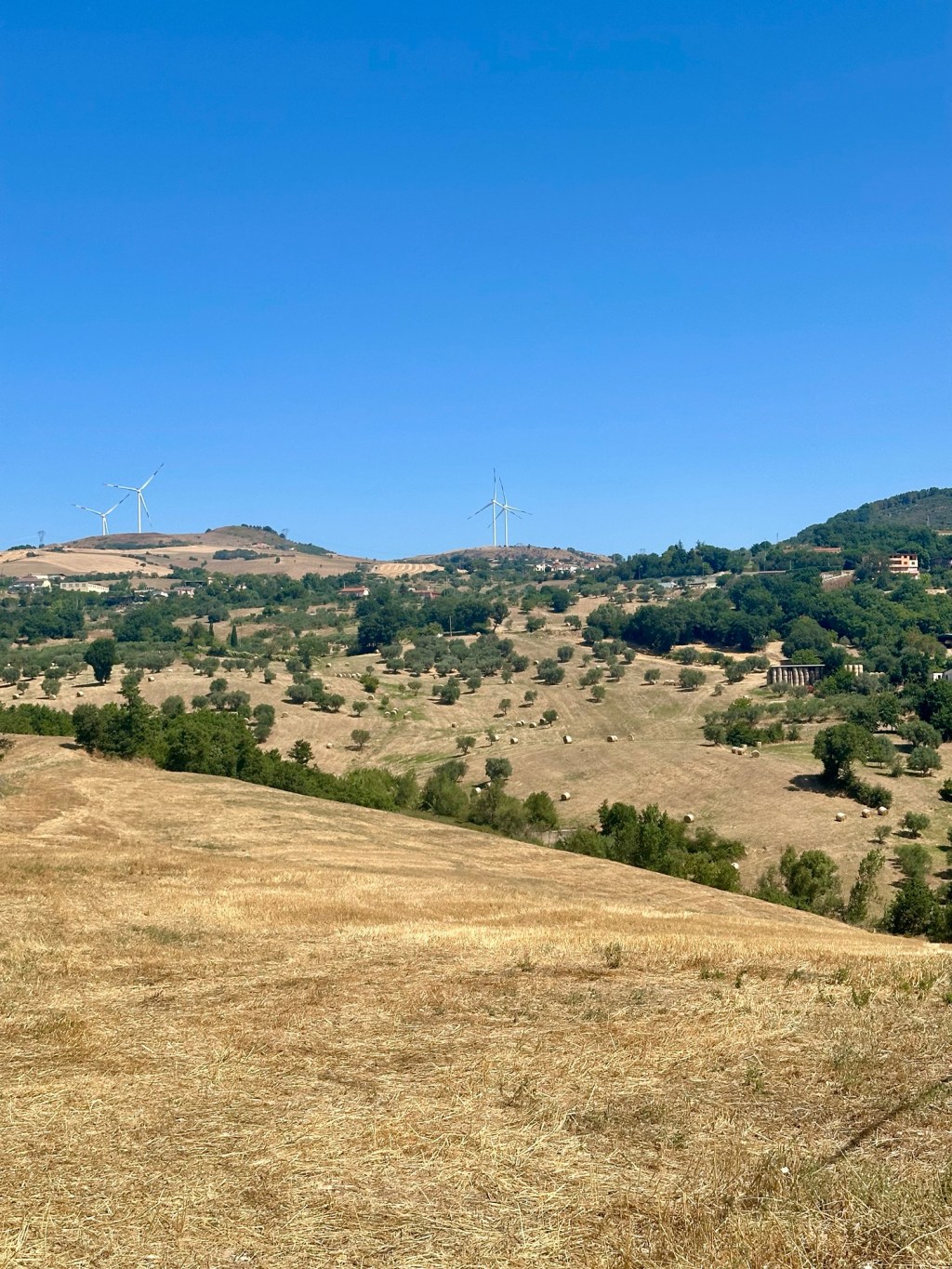 Bref ça monte longtemps. On est remonter à plus de 400 quand on arrive du côté de Paduli. La encore un petit bar nous permet de nous réhydrater. Finies les fontaines du nord. Après la ville, la campagne, plutôt jolie, propre avec de bons chemin. Des plantations de tabac en grand nombre, du pois chiche et toutes sortes de courgettes.