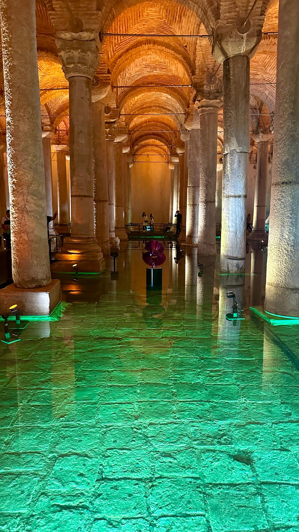 À la sortie, direction la basilique citerne, qui n’en est pas une au sens premier mais avec des colonnes aux feuilles d’acanthe, son volume, elle en aurait fait une très belle. C’est une citerne romaine ou plutôt byzantine. Les jeux de lumières et les œuvres contemporaines exposées sublime le lieux. À voir.